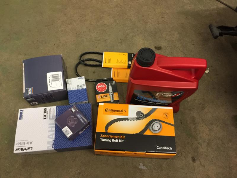 Auspuffanlage ab Kat, ATE Bremsen komplett (Scheiben vorn & hinten, Klötze vorn & hinten, Handbremse, Rep.-Bleche: Radläufe (Innen & Außen) hinten links & rechts, Nebelscheinwerfer, Clipse, Zahnriemen Set, Wasserpumpe, Zündkerzen, Luftfilter, Öl & Ölfilter, Benzin Filter, Verteilerkappe & Läufer, Motor & Servo Keilriemen, Scheibenwischer, Frostschutz, Antenne, diverse Kleinteile.