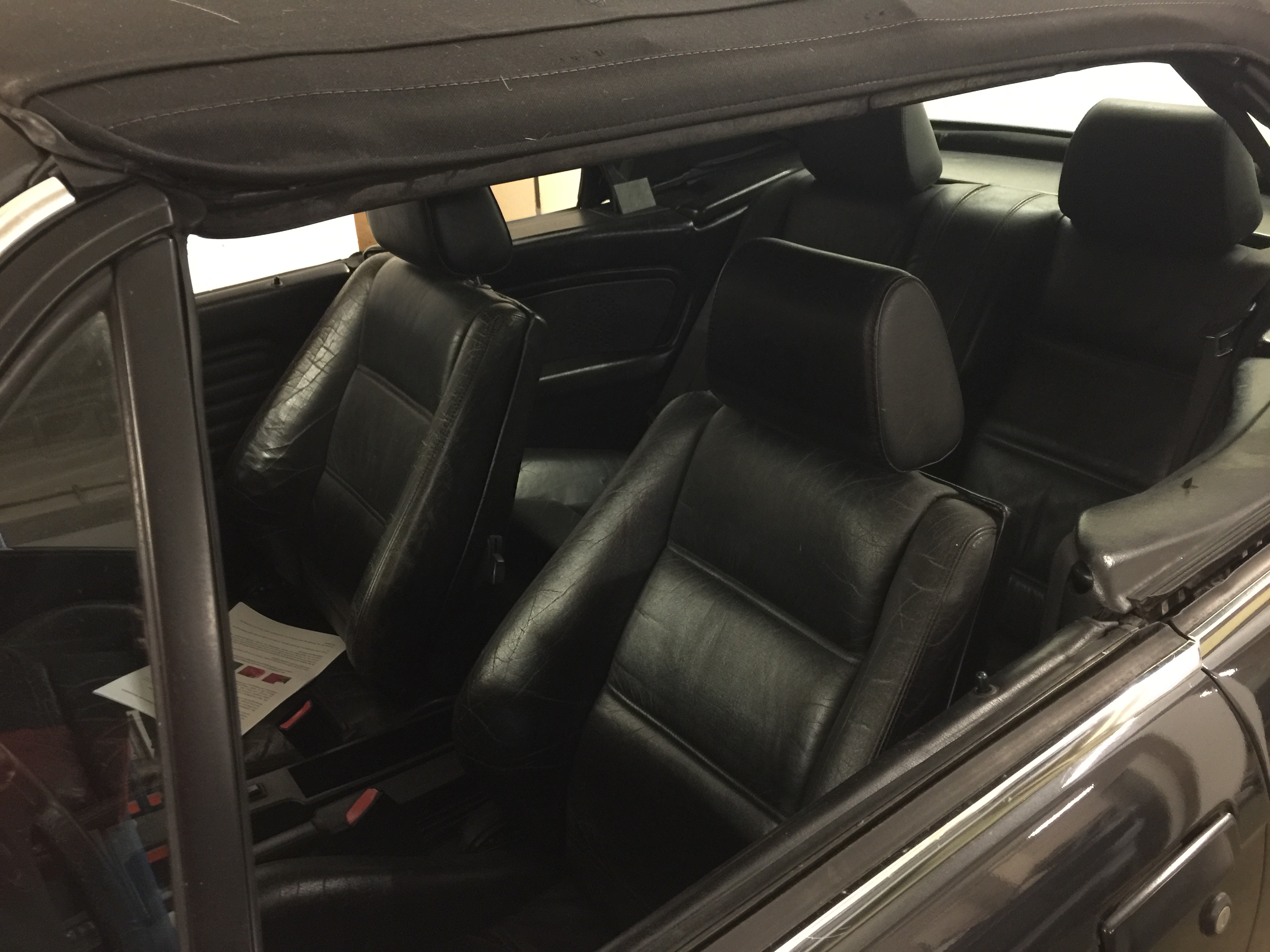 schwarze Sportleder Ausstattung mit Sitzheizung, Fahrer Airbag, BBS Kreuzspeichen Alufelgen in 7x15 mit 205/55 R15 H Reifen, Grün Color Verglasung, 5 Gang Schaltung, el. Fensterheber, Manuelles Verdeck, hinten Kopfstützen, ZV, Nebelscheinwerfer,
