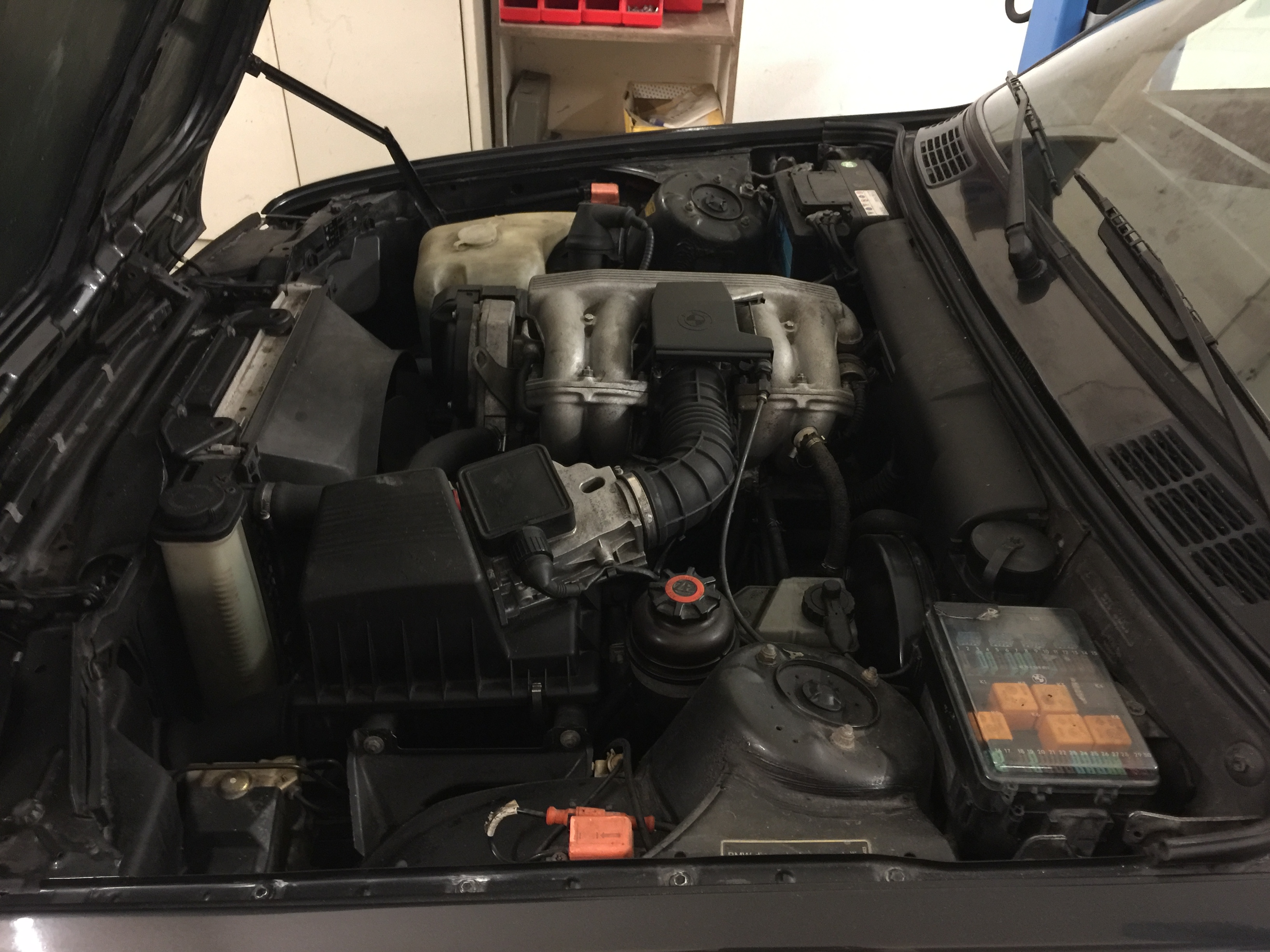 Austausch Motor mit 125000 KM wurde vor dem Einbau überprüft 12,5 bar Kompression auf allen Zylindern. Dann wurden alle Verschleißteile erneuert, also Öl, Ölfilter, Zündkerzen, Verteilerkappe und Läufer, Zahnriemen mit Spannrollen, Wasserpumpe, Luftfilter, Motor und Servo Keilriemen, Benzinfilter, Bremsflüssigkeit, Getriebe Öl, Kühler Frostschutz, Scheibenwischer.